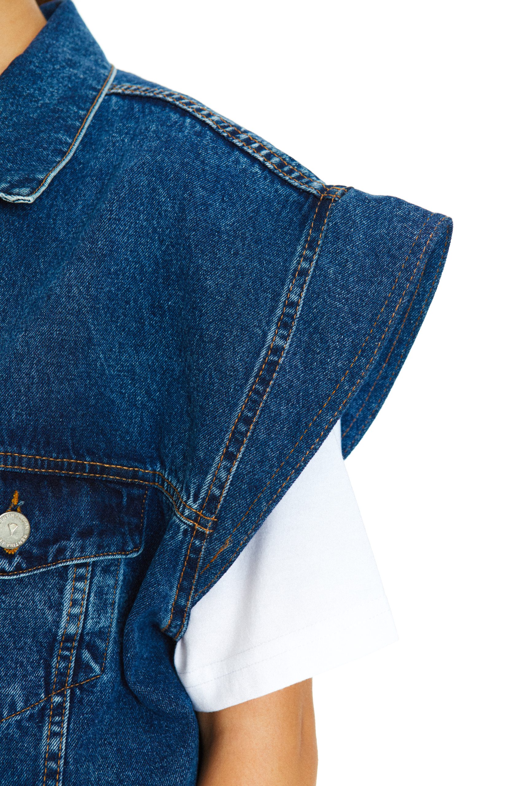 Redefine tus básicos con nuestra chaqueta de denim en lavado medio. Su diseño destaca por unas mangas cortas y amplias con volumen escultural, que añaden una dosis instantánea de sofisticación moderna a cualquier conjunto. Perfecta para llevar sobre una camiseta blanca minimalista y tus jeans favoritos.